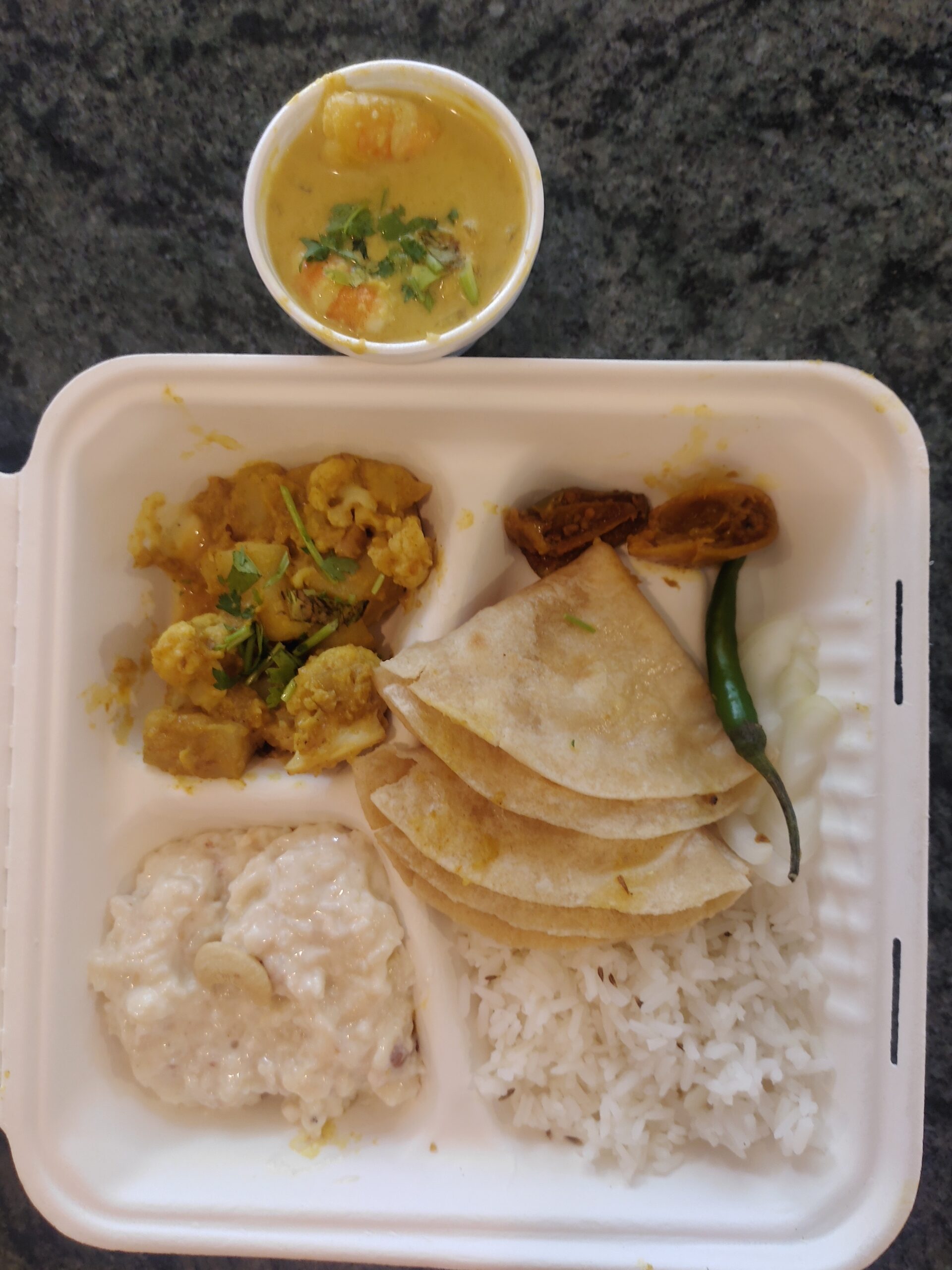 Desi Shrimp Thali (8 Items) – A full multi course Indian meal